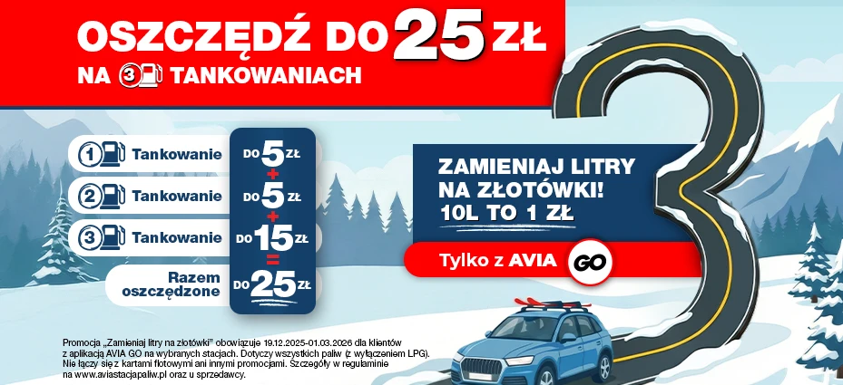 Raz dziennie, wyłącznie dla użytkowników aplikacji AVIA GO.